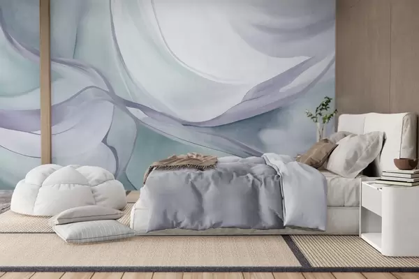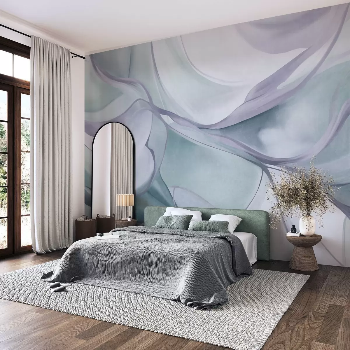 Τοιχογραφίες Αφηρημένα σχήματα με υφή και ρευστή γραμμή σε αποχρώσεις του μπλε και του γκρι, με λεπτές γραμμές Nr. w09818v1