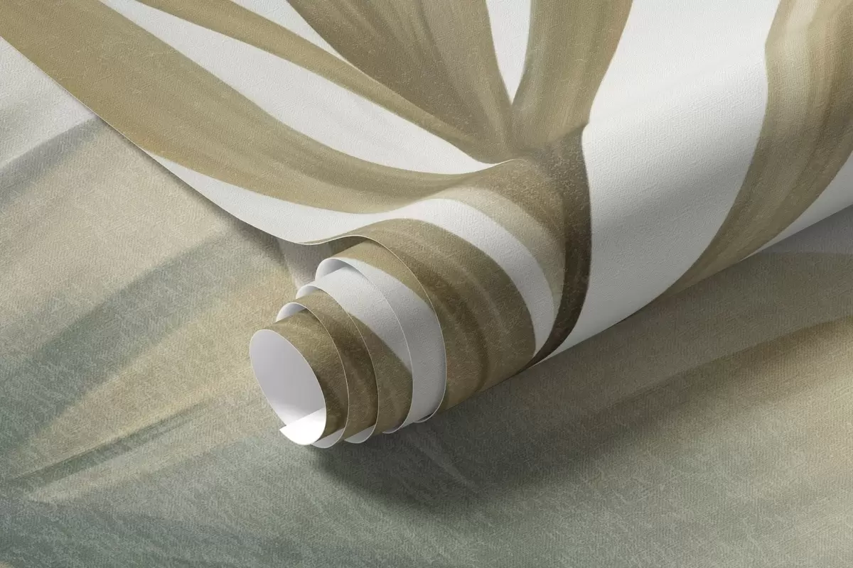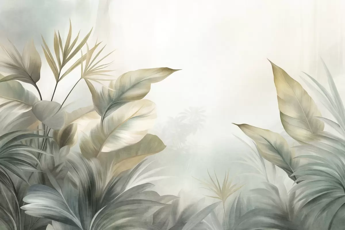 Τοιχογραφίες Μεγάλα, ανάγλυφα τροπικά φύλλα σε απαλούς πράσινους και μπεζ τόνους, ένα περιβάλλον ζούγκλας Nr. w09820